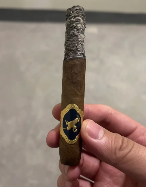风味记录上,刚点燃的前小半段,主要是那种烘焙的甜香,有点像烤红薯或者甜面包,闻着挺舒服。烟气看起来大,但在嘴里存在感不强,口感不算细腻。抽一会儿之后,苦味会上来,这时会出现一些咖啡香混合烧木头的味道,我个人还挺喜欢这股木头味的。抽到后半段,如果大口抽的话会感觉有点辣口,小口慢吸能缓解。我性子急,通常就大口抽了。