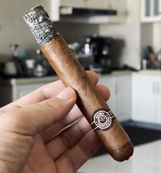 蒙特双埃德蒙雪茄点燃后燃烧稳定,烟雾量充足,阻力适中。烟灰呈灰白色,结构紧密,持灰能力较强。整体抽吸过程顺畅,表现出稳定的古巴雪茄特征。