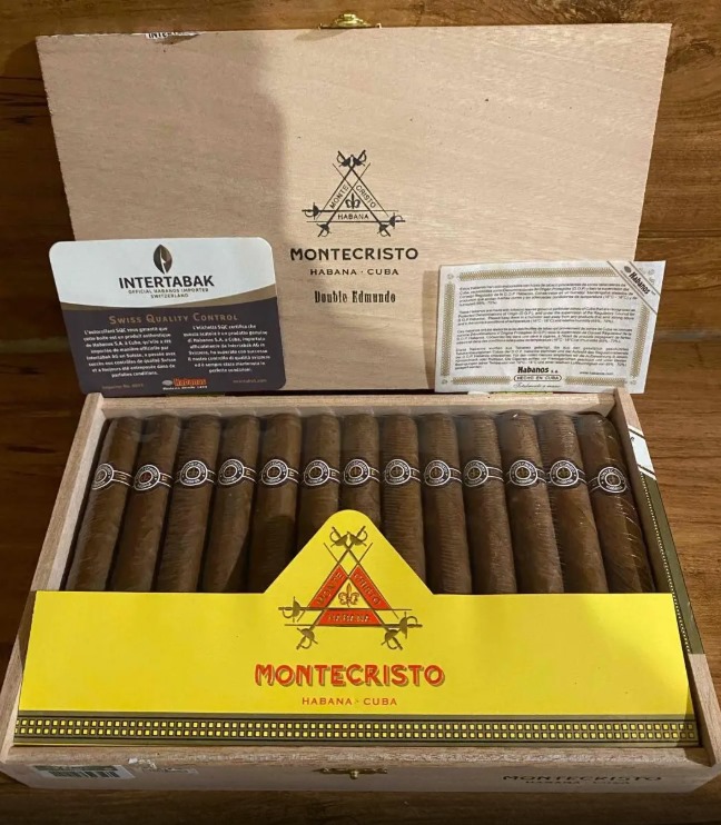 蒙特双埃德蒙雪茄推出于2013年,定位于“特级罗布图”尺寸,长155mm、环径50。采用Vuelta Abajo产区陈化5年的烟叶,强调木质与甜香基调。其设计灵感源自《基督山伯爵》主人公埃德蒙·唐泰斯,象征着经典与力量的延续。凭借均衡的风味和较高的浓郁度,这款雪茄成为蒙特系列的重要型号。