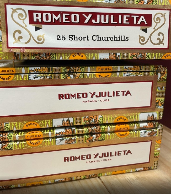 罗密欧短丘吉尔雪茄由古巴Romeo y Julieta品牌推出,属于丘吉尔规格。它于2006年首次在哈瓦那雪茄节亮相,长度124mm,环径50,燃烧时间约50至70分钟。常见为10支/盒,市场价格约3200元/盒,也有25支装与部分铝管版本。