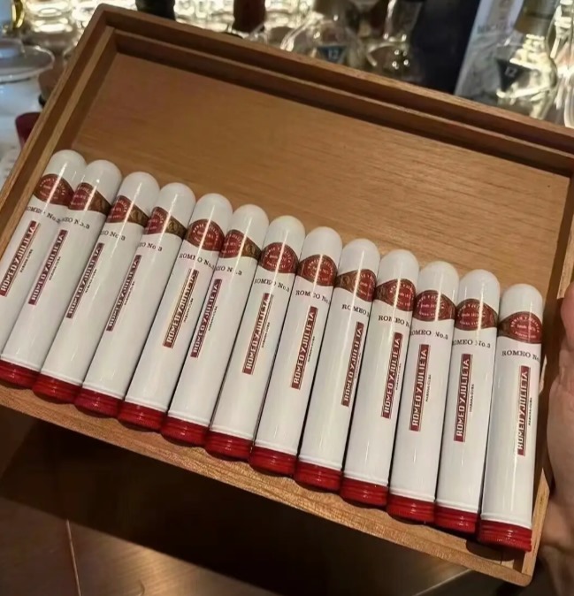 今天抽的是罗密欧3号雪茄,全称Romeo y Julieta Romeo No. 3,是品牌铝管系列里的热门款。常见10支木盒装,价格大概2500元一盒,算下来单支100块左右。尺寸是长度117mm、环径40,属于小高朗拿规格。罗密欧3号这支雪茄浓度中等轻柔,适合新手入门或者当日常口粮。罗密欧3号的整体体验比较温和,便携性很好。