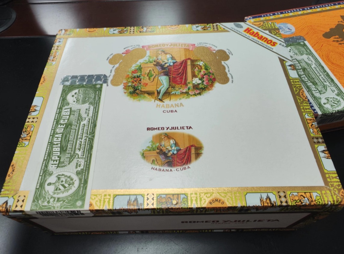 罗密欧1号铝管雪茄采用经典的银色铝管独立包装,铝管表面印有品牌标志性的红色标签,包含“Romeo y Julieta”字样和金色花纹,整体设计简约优雅,兼具现代感与辨识度。每支铝管内配有雪松木片,既能防止茄衣摩擦受损,又能辅助保持湿度并增添木香。常见包装规格为10支/盒或25支/盒,纸盒或木盒外层印有防伪标识及产品信息,适合收藏或馈赠。