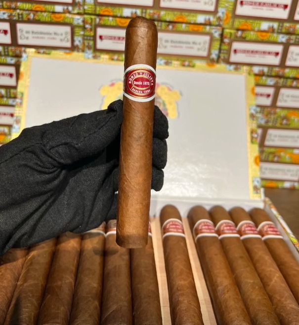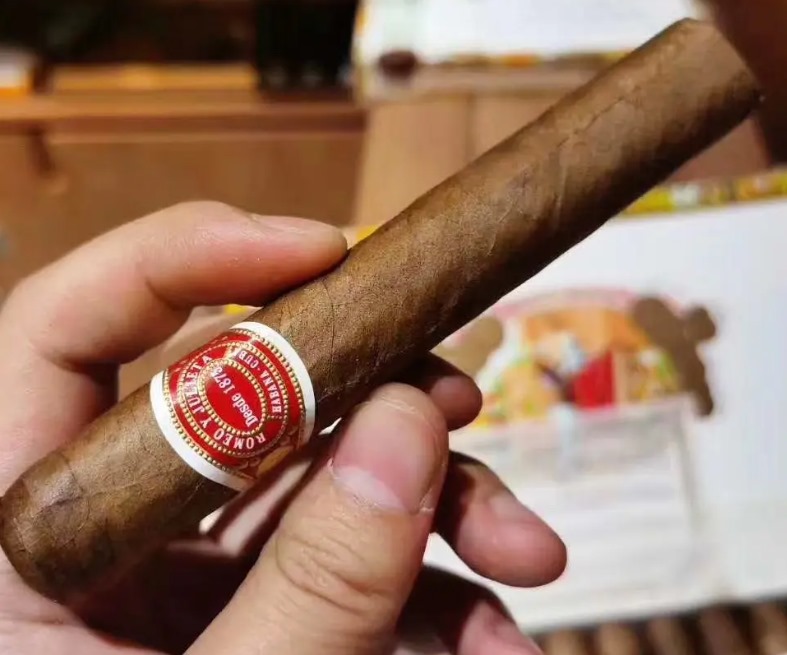 罗密欧展览4号(Exhibición No.4),圈里人常叫它“展览4号”,是古巴罗密欧与朱丽叶品牌里的一款经典罗布图。一盒25支,市场价约4500元,算下来每支180元左右。尺寸是长度127mm,环径48,属于标准罗布图型号。工艺是纯手工卷制,浓郁度中等,1980年推出,产量现在不高,但风味以复杂平衡著称,带甜水果味。这款雪茄在品牌里算冷门,喜欢的人不多,评价两极分化。