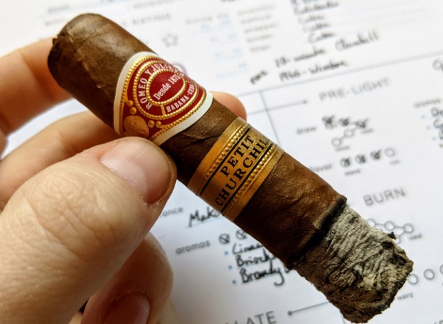尾段:后段焦糖的甜韵很明显,但抽得快了会有点皮革的苦感,我一般35分钟左右放下。
