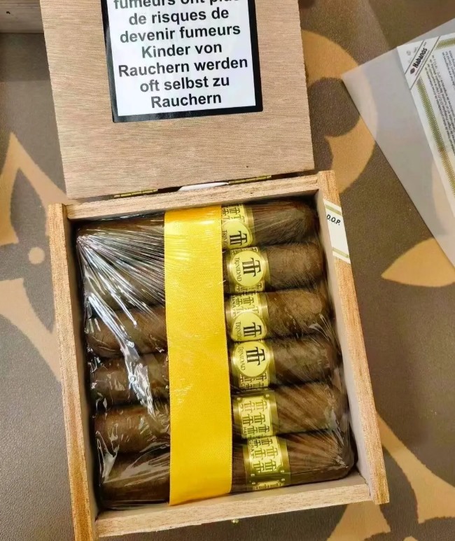 这款雪茄最吸引人的就是它独特的外观。浅棕色茄衣油润光滑,叶脉清晰可见,最特别的是那个标志性的“小辫子”茄帽——这是特立尼达手工卷制工艺的象征。茄体短粗紧实,环径54mm保证了充足的烟气量,拿在手里分量感十足。