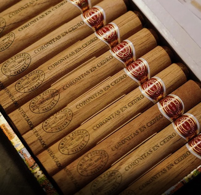罗密欧雪松小皇冠(Romeo y Julieta Coronitas en Cedro)是一款产自古巴的手工Petit Corona雪茄。规格为25支/盒,售价约8800元/盒(单支352元),长度129mm,环径40,单支品吸时长约30-40分钟,以雪松片包装增添独特木香。