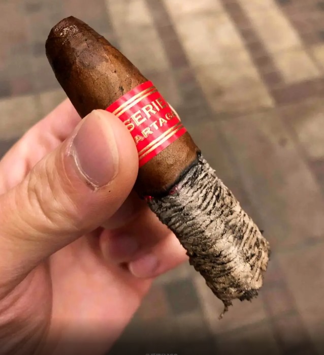 中段泥土雪松味爆出来,焦糖甜感平衡得巧妙。偶尔有几口惊喜的花香,肉桂味淡淡铺底。V口剪浅了吸阻会变大,补一刀后浓郁度直线上升,香气翻倍。