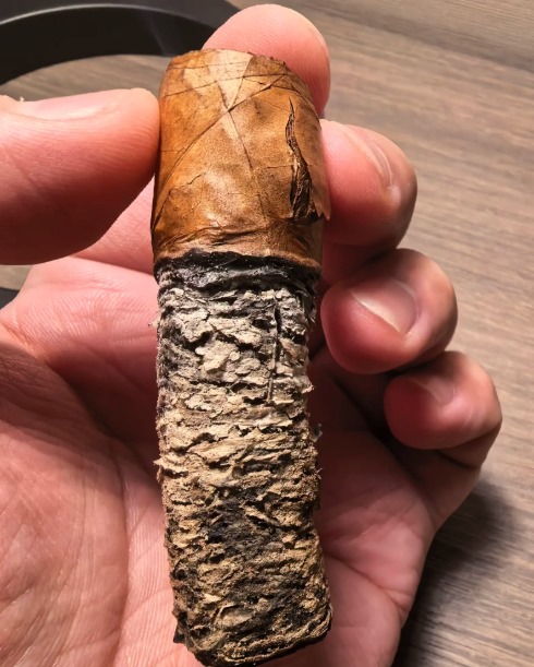 帕特加斯D6的包装为传统抽屉式木盒,表面为原木色,盒盖印有红色金边LOGO与型号标识,侧边贴有防伪标签,盒内搭配香柏木片以维持湿度。茄衣为中棕色(Colorado Claro),表面光滑油润,叶脉细腻。三重茄帽工艺精细,茄体紧实,冷嗅时能感受到雪松木与蜂蜜的混合气息。
