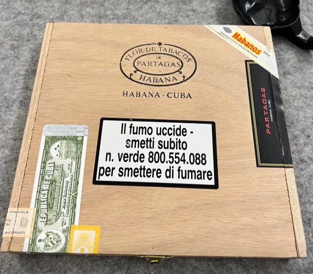 D6采用经典的雪松木盒包装,我挺喜欢这种简约设计。盒顶有红色“Partagas”标识和金色边框,侧面标注了型号和产地。盒内雪茄分两层排列,每层10支,还配有雪松木片保湿。雪茄本身是深巧克力棕色茄衣,油润光滑,叶脉细腻,三重茄帽处理得很工整。卷制紧实,冷嗅时有木质和蜂蜜香气。