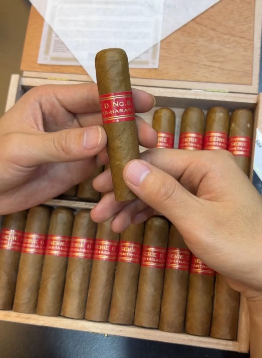 D6是2014年推出的产品,与D4相比,除了长度不同,我个人觉得D4可能需要稍湿一点的环境,而D6则适合干一点的状态来发挥风味。D6的浓郁度更高,风味更集中,但变化相对简单。作为短时间品鉴的选择,它挺不错的,不过如果时间充裕,可能更适合再尝试其他雪茄。