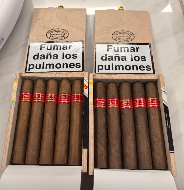 常规版采用原木色或白色纸盒,印有红色品牌标识;部分限量版则为黑漆木盒并带独立编号。茄衣呈红棕至深褐色,油润光亮,叶脉粗犷,茄帽为三线手工卷制。手感紧实,做工一如既往地体现古巴雪茄的传统工艺。