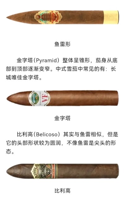 - 金字塔(Pyramid):尺寸152-178mm × 40-54环,底部宽头部尖,风味随燃烧逐渐释放。代表品牌有库阿巴慷慨、高希霸金字塔。