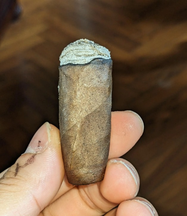 点燃后是木味及酸咖啡香甜,酸味会重一点,胡椒感也不低,偶有烘蛋糕香气。整体浓郁度中等偏高,以胡椒、黑巧克力和泥土为主导,烟气饱满且带有轻微辛辣感。