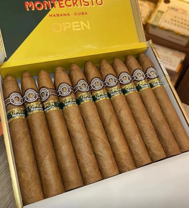 蒙特比赛雪茄(Montecristo Open Regata)于2009年哈瓦那雪茄节首次亮相,作为Open系列的重要型号之一,专为高端户外运动场景设计,如高尔夫与帆船等。该款雪茄采用小金字塔(Petit Pyramid)尺寸,长度135mm,环径46,中等至浓郁浓度,燃烧时长大约40-50分钟。市场售价约4720元/盒,常见规格为10支装,同时也提供15支铝管版本和20支木盒版本。