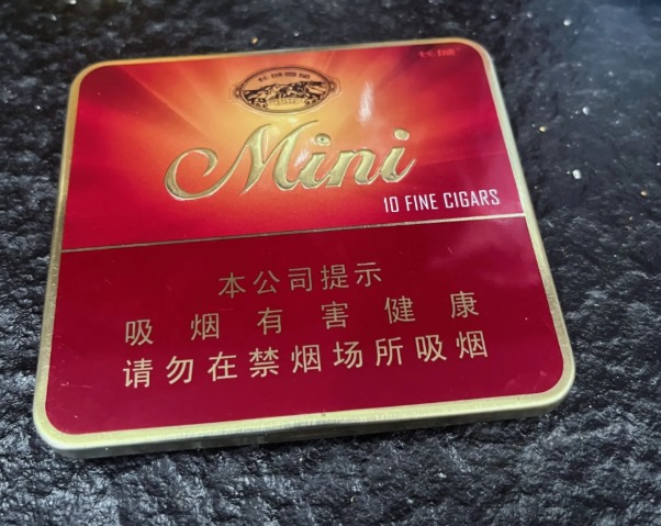 长城迷你香草雪茄采用酒红色方扁型铁盒包装,盒身带有烫金“长城”LOGO及“Mini”字样。铁盒为抽拉式开口,内置10支雪茄整齐排列。2025年新版包装升级为磁吸式盒盖,密封性更好,茄体玻璃膜改用可降解材料。外观方面,茄衣为巴西深色烟叶,表面油润光滑,茄体紧实均匀,末端预剪口设计,点燃后烟灰灰白且持灰性良好。