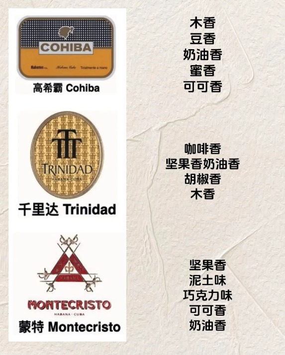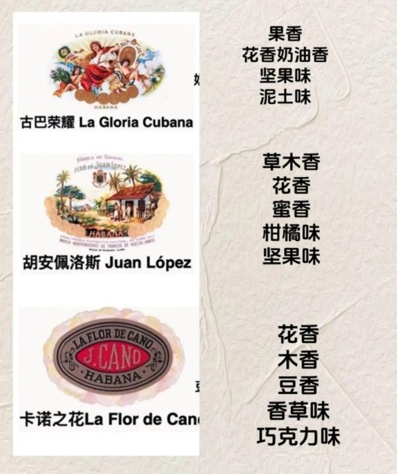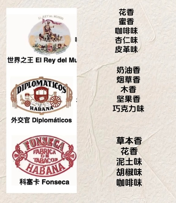 雪茄的风味呈现复合型特征,多种香气交织形成独特体验。雪茄的风味类型包括植物与草本、木质调、香料、坚果、甜味等类别。
