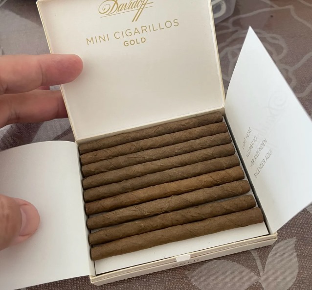 大卫杜夫迷你雪茄采用银色或金色铁盒包装,盒面浮雕有“Davidoff”LOGO与“Mini Cigars”字样,辅以黑色饰边与暗纹。每盒10支,单支独立铝箔纸包裹,密封性强,便于携带与保存。