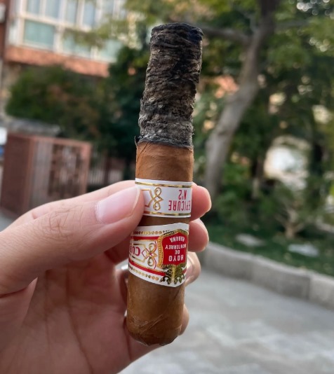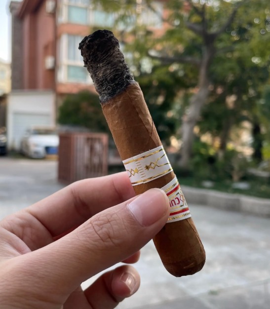 中段可可、坚果风味渐显,焦糖回甘突出,部分批次带柑橘果香。燃烧缓慢,整支茄均散发出舒适感,灰段坚挺,抽吸感良好。