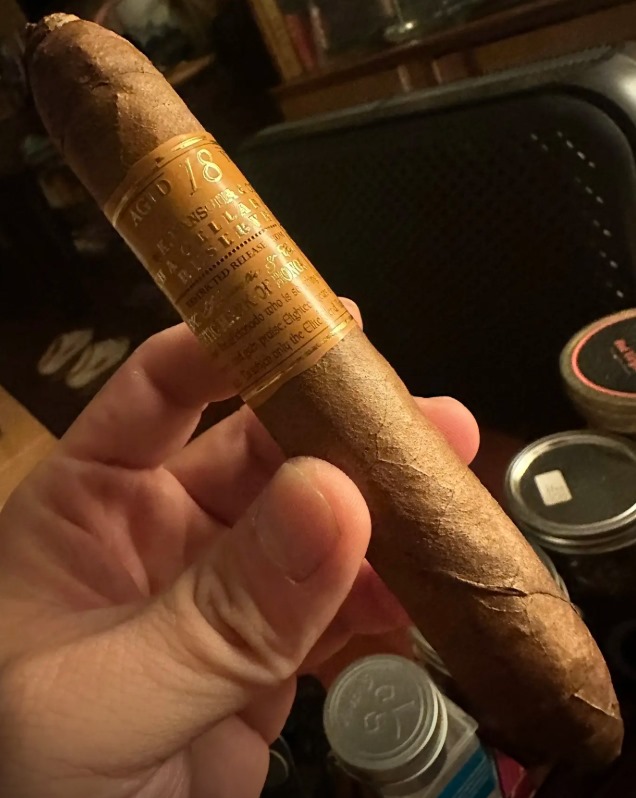 烧到中段,皮革和雪松木味上来,焦糖甜感开始交织,酒桶香气越来越明显。烟气变得浓郁,但平衡感不错,没有锁喉感。配点矿泉水能清晰感受风味变化。
