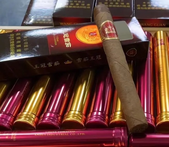 王冠雪茄铝管2支装燃烧均匀,持灰感良好,烟灰层次清晰,不易掉灰,燃烧时烟气平稳,无明显焦油感。