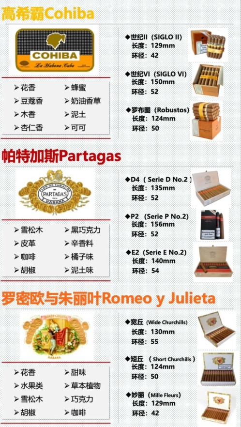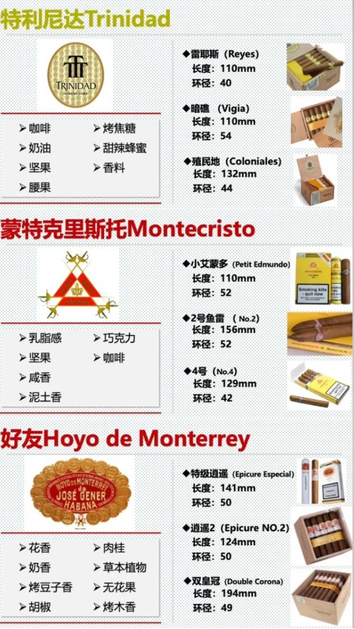 | 特立尼达(Trinidad) | 雷耶斯(Reyes) | 110mm×38环径 | 花香与奶油香 | 细长型,曾为外交国礼 |