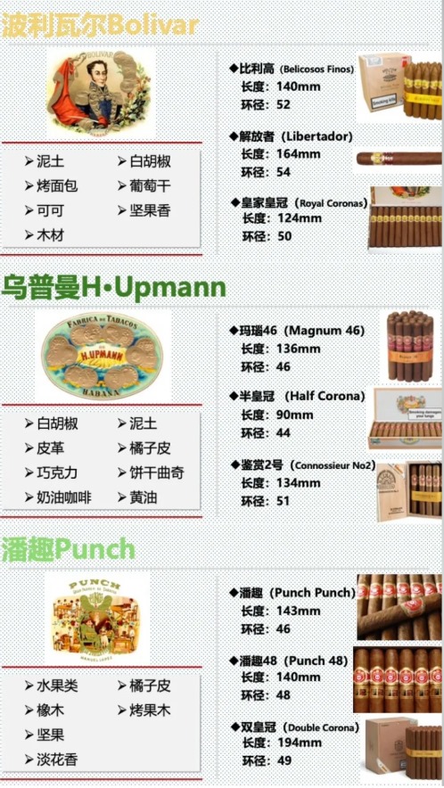 | 玻利瓦尔(Bolívar) | 皇家罗布图(Royal Robusto) | 124mm×50环径 | 泥土与烤面包香 | 浓郁型 |
