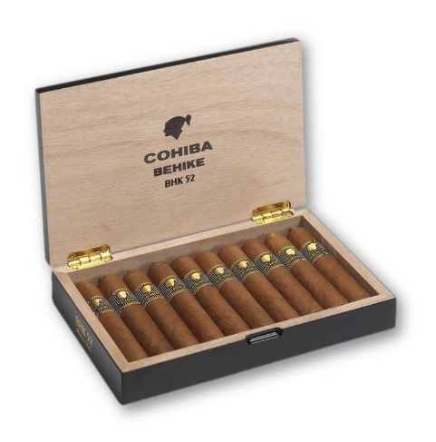 高希霸特级罗布图用的是深棕色木质礼盒,盒盖上有金色印第安人头像和“COHIBA”字样,边缘带黑色镶边,设计简约但透着奢华感。常见的是25支装滑盖盒,里面防潮层挺实用,能保持湿度稳定。限量版还会用铝管分装,每3支独立包装,纸盒装(15支)则轻便些,盒身有品牌标和防伪标签。