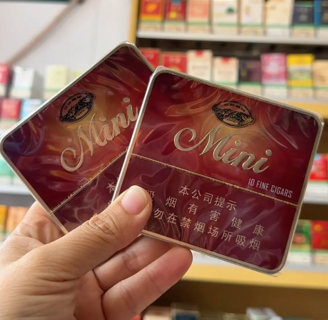 采用酒红色或暗红色铁盒包装,正面印有金色“Mini”字样及长城LOGO,设计简约复古。盒型宽扁便于携带,内部无过滤嘴,茄衣采用巴西烟叶,添加天然香草香精。