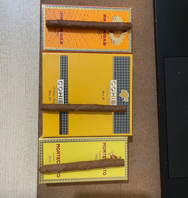 今天抽一支蒙特迷你雪茄,这小东西是古巴蒙特家的机制小茄,圈里叫它“快抽神器”。一盒50支才1260块钱,尺寸小巧,长87mm环径22,强度中等,我给3星,适合新手或者想快速解瘾的老茄客。茄衣深棕色,油光锃亮的,独立包装带着特方便,点着就能来一口。