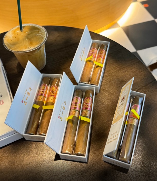 王冠古雪1号雪茄燃烧均匀,烟灰紧实。新茄在尾段偶有杂气,需静养1-2个月后风味更佳。整体燃烧顺畅,击喉感适中。