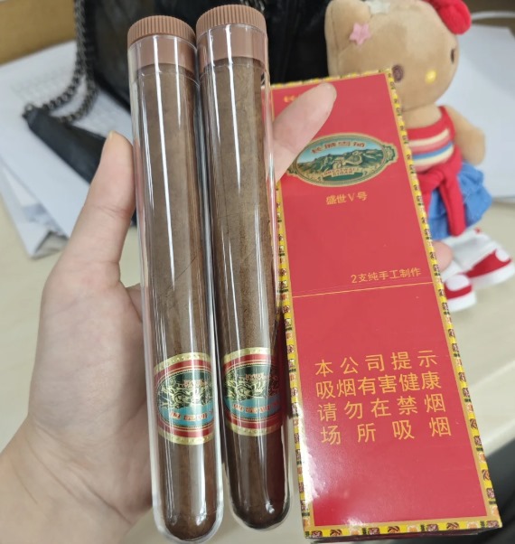 盛世5号的包装挺有中国特色的,用的是红色硬盒,配上帝王黄的字体和长城的logo,看起来很喜庆,辨识度也高。一盒里面有10支,分成5个独立的小盒,每支雪茄还有一个透明的亚克力管单独套着,这个设计对雪茄的保护很到位,带出门也方便。