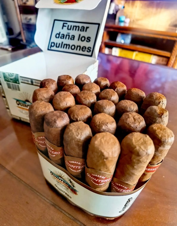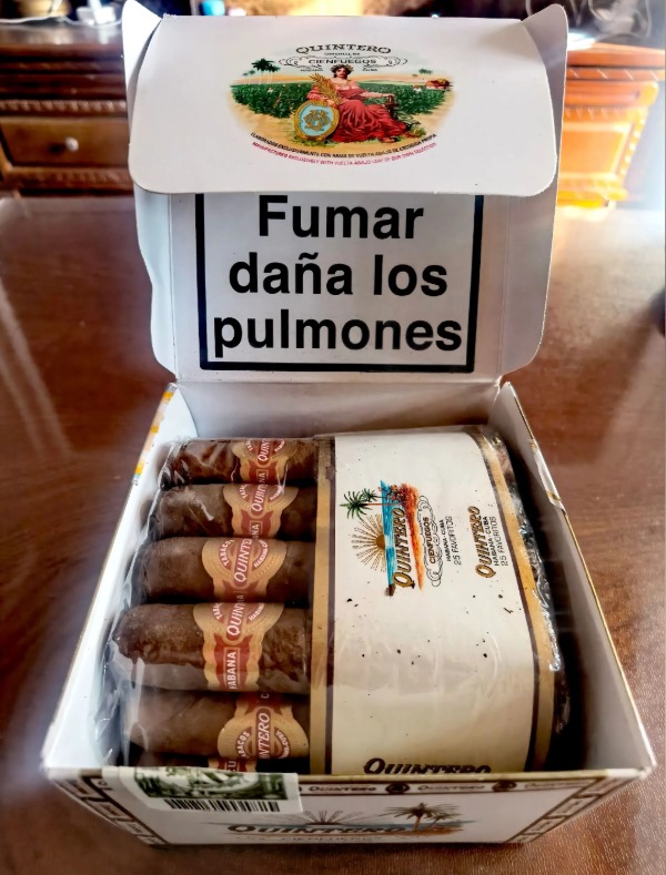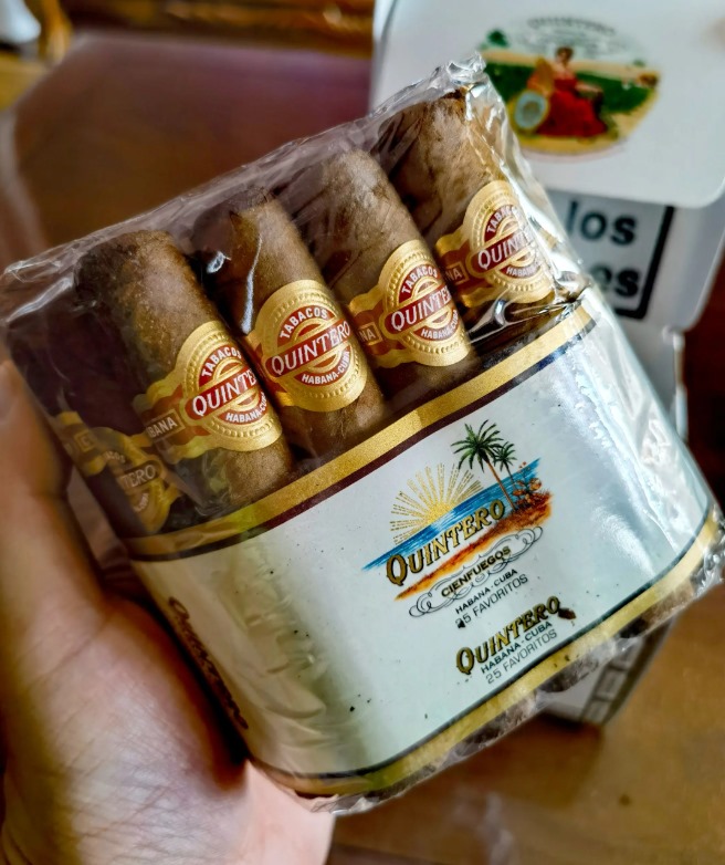 包装方面,金特罗挚爱提供多种形式。我买的这款是纸盒装,主色调乳白色,盒面印有品牌名称“Quintero”和型号“Favoritos”,设计简约,突出古巴传统风格。另外还有铝管装和礼盒装,铝管便于携带,礼盒可能搭配雪茄剪,适合送礼。
