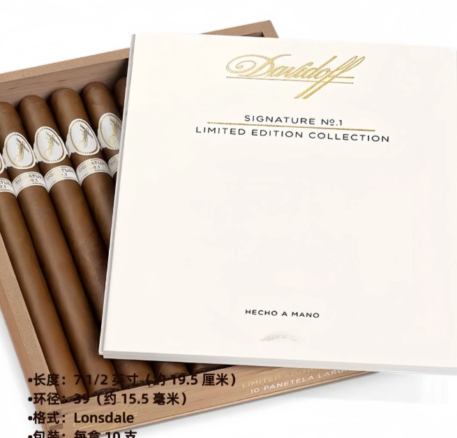 | 经典2000(Signature 2000) | 129mm(5.1英寸)×43环径 | 奶油、雪松木与烤坚果香气,余味干净 | 铝管单支或5支/25支木盒 |