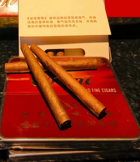 介绍: 这款雪茄价格约20元一盒,每支1元。奶香与雪茄香融合,烟气浓度低,持灰时间约15分钟,适合快速解瘾,性价比高。