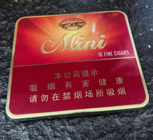 今天试了盒长城迷你香草雪茄,圈里常叫它“长城香草mini”,一盒10支装,价格20元左右。尺寸是75mm长,环径25,属于机制小雪茄,浓郁度估计1.5星,强度不高,点起来方便。打开铁盒,香草味儿挺冲,适合新手尝鲜或者平时随便抽一根,但别指望有啥深度。