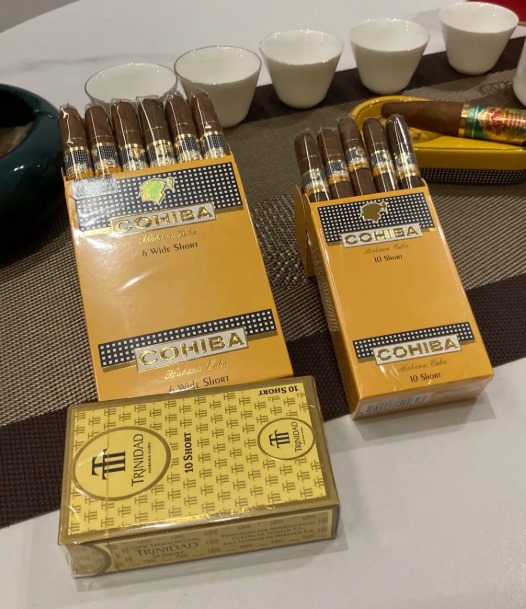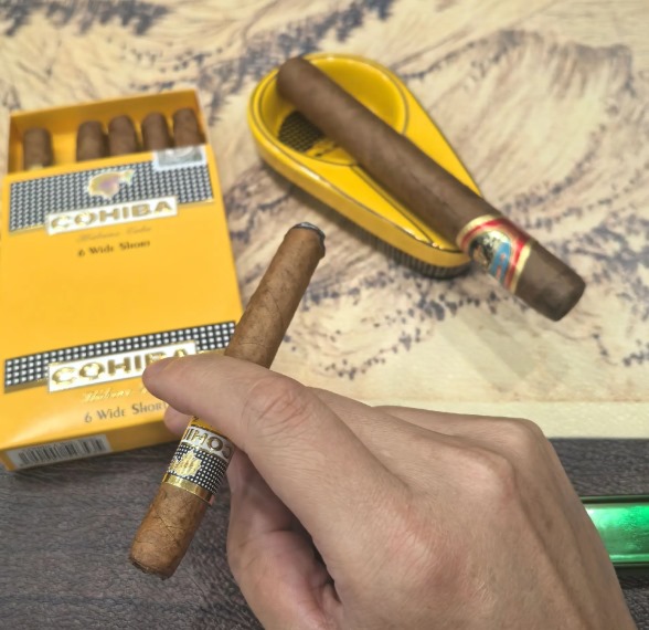 高希霸宽短(Cohiba Wide Short),这款2023年新出的机制小雪茄,尺寸是4英寸长、32环径,浓郁度中等到饱满。一支价格35元左右。它比经典的短号更粗一些,主打的就是一个便携和风味兼顾,我个人觉得挺适合当日常口粮的。
