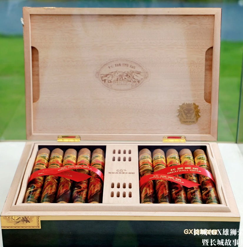 长城雄狮荣耀雪茄是长城GL系列首款国礼级限量产品,由国际专家团队与国内卷制大师共同研发,历经3年打磨完成。其核心创新是采用喀麦隆烟叶作为配方核心,并结合国产与多米尼加烟叶,确保风味复杂且平衡。工艺方面应用“132秘制发酵法”和双重养护技术,提升烟支醇化效果。文化层面,包装设计融入雄狮与长城元素,寓意东方醒狮精神与力量。