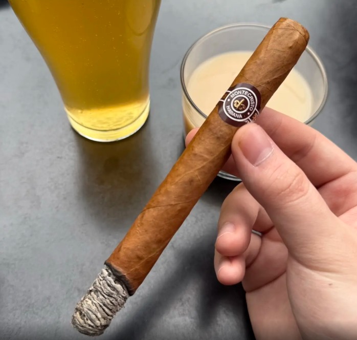 点火后前几口,标准的蒙特咖啡香直接出来,带点皮革味和轻微甜感,很讨喜。烟气细腻顺滑,虽然有吸阻但不算堵,我觉得前段满足感不错,锁喉感基本没有。
