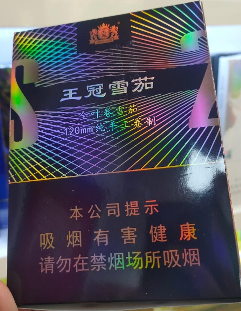 包装盒以白色或黑色为主色调,搭配栗色或金色副标,抽拉式结构设计。内部雪茄排列紧凑,但无保湿内衬,长期保存需注意环境湿度。雪茄茄衣呈浅棕色至红棕色,质地较薄且脆,表面叶脉清晰,触感略粗糙。茄标简洁,金色字体标注“王冠”及“全叶卷”字样。