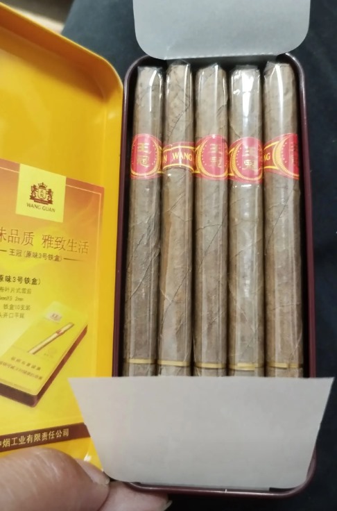 开一盒王冠原味3号,这茄是国产里的“秀丽型口粮”,50支铁盒装才90块钱,折合单支不到2块。半机制半叶卷工艺,适合当日常零嘴。