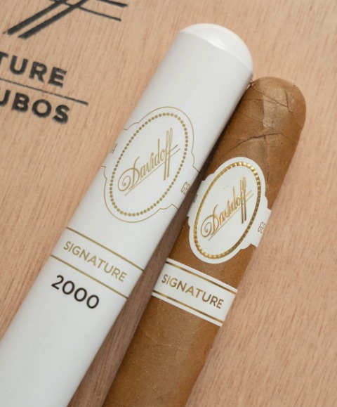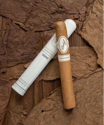 浅金色的茄衣泛着油光,纹理细腻,手感顺滑。双环标设计,主标是白色底金字“Davidoff Signature”。卷工紧实,茄帽圆润,吸阻通畅稳定,建议平剪口品吸。铝管内附雪松木片,保湿效果不错。