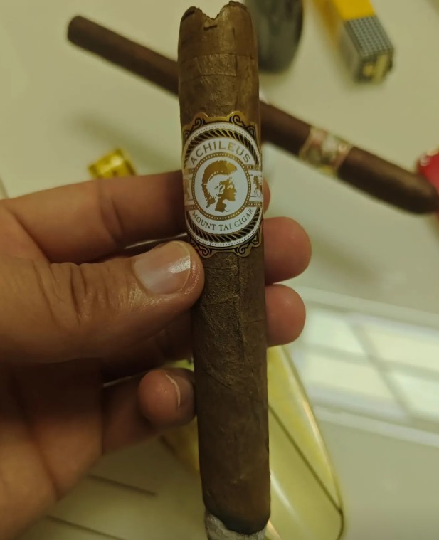 泰山战神白金雪茄点燃后,前段以木香与坚果香为主,夹带少许可可香,烟气顺畅柔和,击喉感轻。