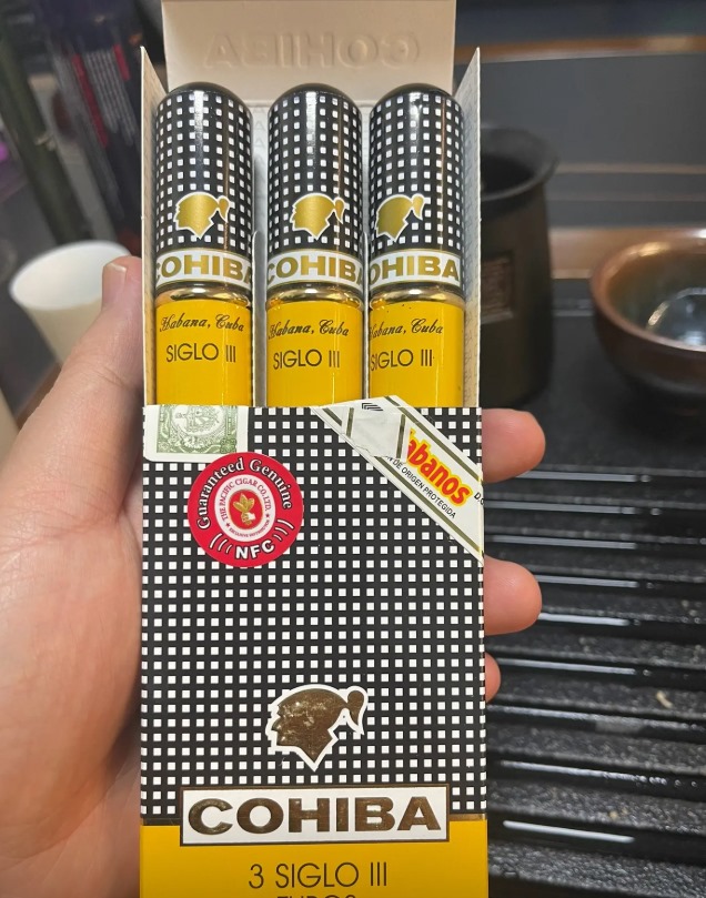 古巴原产高希霸世纪3号雪茄(Cohiba Siglo III)于1994年推出,属于世纪系列Linea 1492。常见规格为25支/木盒装,价格约8500元/盒,部分旅行版为15支铝管装。雪茄长度155mm,环径42,燃烧时长在60-90分钟之间,浓郁度为中等至中等偏上。