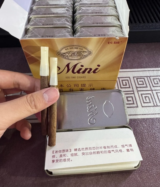 长城迷你雪茄是长城品牌推出的机制小雪茄,常见口味包括原味、咖啡和香草。其尺寸规格较为统一,长度多为75mm,环径在22mm至27mm之间,单支价格在2元左右,采用10支装铁盒包装。