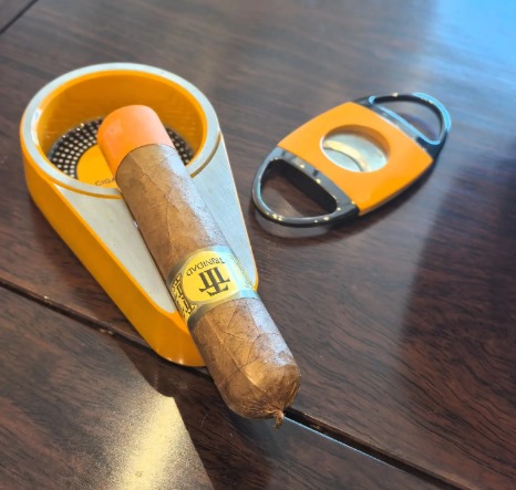 特立尼达(Trinidad)雪茄以前是卡斯特罗的专属外交礼物,1998年才市场公开,逼格满满。浓郁度5颗星,妥妥的古巴高端货。茄衣是Vuelta Abajo产区的顶级烟叶,猪尾巴茄帽设计很抢眼,养了两个多月,状态正佳。